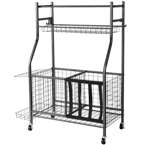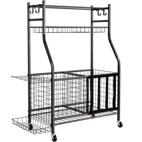 VEVOR Garagen-Organizer für Sportgeräte, Rollwagen zur Ballaufbewahrung auf Rädern, Basketballständer mit Körben & Haken, Aufbewahrung von Sportgeräten und Spielzeug für drinnen und draußen