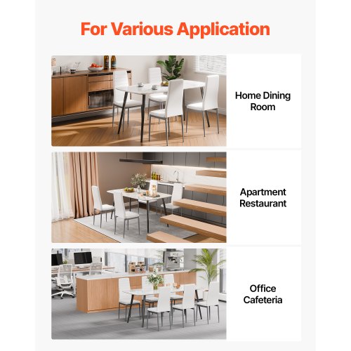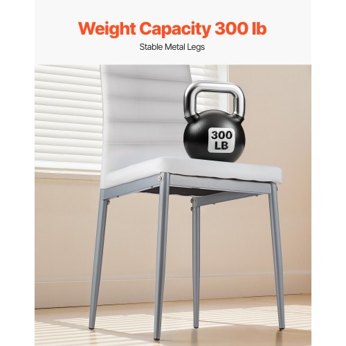 VEVOR moderner Esszimmerstuhl (6 Stk.) eleganter gepolsterter Leder-Beistellstuhl (136 kg belastbar) für Esstische, platzsparender Küchentischstuhl mit dicken Kissen & Metallbeinen, Weiß Cafeteria