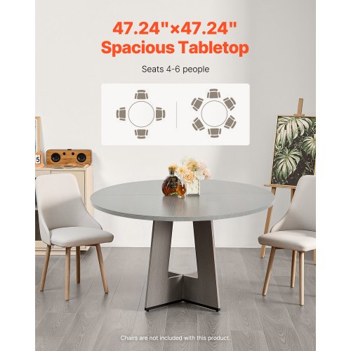 VEVOR runder Esstisch Küchentisch Holztisch (120 cm / 136,1 kg belastbar) für 4-6 Personen, moderne Freizeittische mit Ablage und Metallbeinen, für Küche zu Hause Wohnzimmer, Grau (nur Tisch)