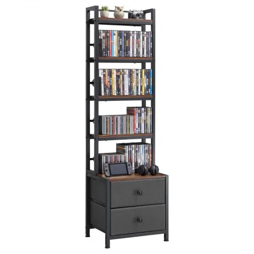 VEVOR DVD-Regal mit 4 Ablagen & 2 Schubladen, Medienregal Standregal 400 x 300 x 1435 mm, Platzsparendes Aufbewahrungsregal für CDs DVDs Bücher Spiele-Discs, Wohnzimmer Homeoffice, Schwarz