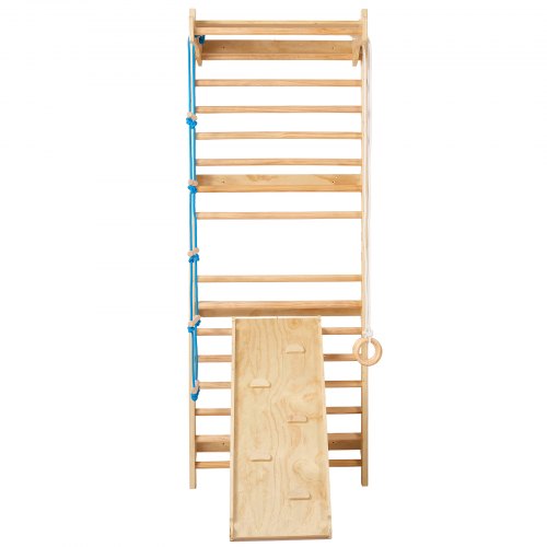 VEVOR Sprossenwand Turnwand Klettergerüst für Kinder (ab 3 Jahren), 5-in-1-Set mit schwedischer Leiter aus Karbonstahl, Klimmzugstange & Strickleiter & Turnringen 100 kg belastbar mehrfarbig