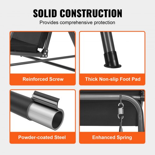 VEVOR 2-Sitzer-Hollywoodschaukel Terrassenschaukel mit verstellbarem Baldachin, Aufbewahrungstasche und drehbarem Tablett Oxford-Gewebe und Rahmen aus legiertem Stahl für Balkon Hinterhof Schwarz