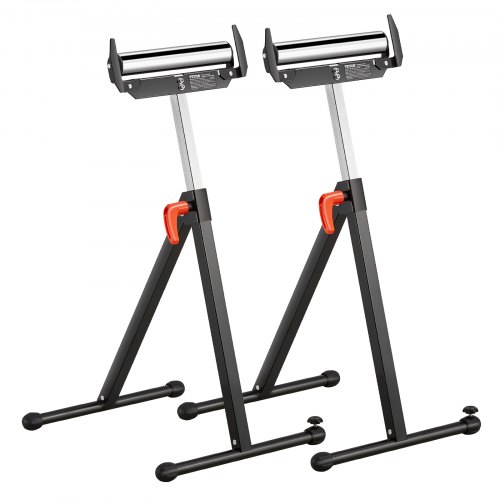 VEVOR 2er-Set Rollenständer, 113kg Tragkraft, höhenverstellbar 68-109cm, klappbarer Arbeitsbock mit Rollenkopf und Kantenführungen aus poliertem Stahl, für Tischkreissägen-Auslauf, Verlängerungsstütze