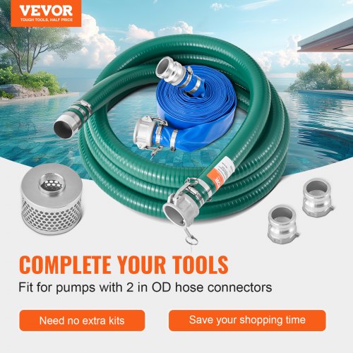 VEVOR Saugschlauch-Set, mit 50,8 mm x 15,24 m blauem Rückspülschlauch, 6,1 m grünem Saugschlauch & Stahlsieb mit rundem Loch, Camlocks, Klemmen, Cam & Groove-Adapter, für verschiedene Zwecke