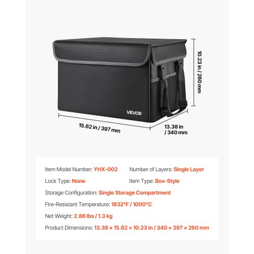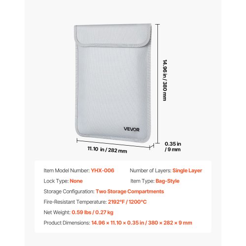 VEVOR feuerfeste Dokumententasche Aktentasche, 1200 °C wärmeisolierte, wasserfeste Dokumentenaufbewahrungstasche mit glattem Reißverschluss, tragbare & Geldtasche für wichtige Dokumente