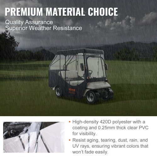 VEVOR Transparent Golfwagen Regenabdeckung 4-Personen-Golfwagenabdeckung 152 x 110 cm, 420D-Polyester Wasserdicht, Tragbar, Fahrbar, Aufbewahrungsabdeckung für Golfwagen Passend für EZGO TXT Golfwagen