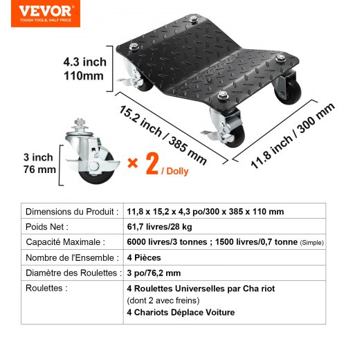 VEVOR Tragbarer Reifenwagen 2 Stk. 1400 kg Belastbar Elektrofahrzeug-Notfallwagen 4-Rad-Reifenwagen Robuster, Mobiler Trolley, Stahlwagen Reifenhalter, Geeignet für Auto, Motorräder Pickups usw.