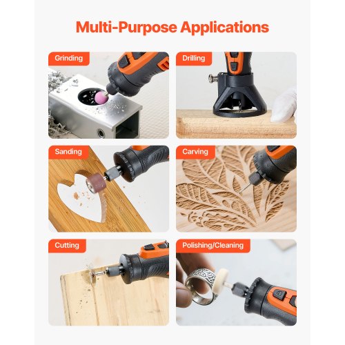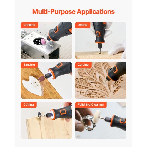 VEVOR 136-tlg. Akku Multifunktionswerkzeug, DC8V tragbares Mini-Rotationswerkzeug, 5 Gang 5000–30000 U/min, zum Gravieren, Schleifen, Polieren, Schnitzen, Schleifen, Schneiden, Heimwerkerhandwerk
