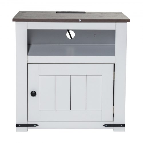 VEVOR Farmhouse Beistelltisch, quadratischer Nachttisch mit USB-Anschlüssen und Steckdosen, 3-stufiger Beistelltisch mit Aufbewahrungsschrank, ideal für Wohnzimmer Schlafzimmer Büro, weiß