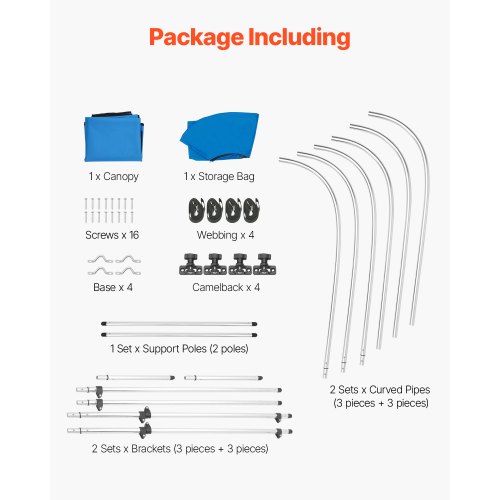VEVOR Bimini Top Bootsabdeckung Sonnenverdeck (3 Bögen) aus 600D Polyester mit Rahmen aus Aluminiumlegierung, wasserdichte Sonnenschutz-Bootsmarkise mit Aufbewahrungstasche, 201-213 cm (B) Blau