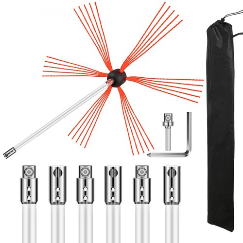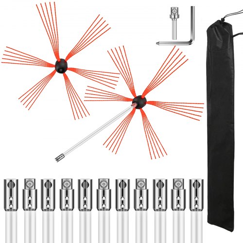 VEVOR Schornsteinbürste Nylon Kaminbürste Ofenrohrbürste 12 M Professionelle Armaturen Edelstahl mit flexiblen Nylonstangen