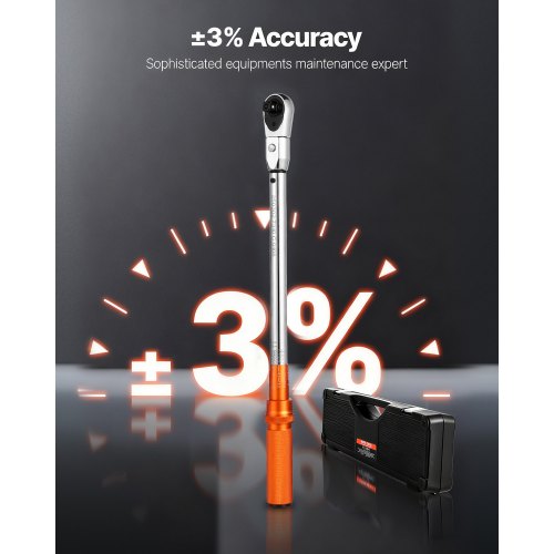 VEVOR Klick-Drehmomentschlüssel, 3/4 Zoll Antrieb 136–814 N.m, Zweiwege-Drehmomentschlüssel-Set mit Zweibereichsskalen, 48 Zähne ±3 % hohe Präzision legierter Stahl für Autoreparatur Orange