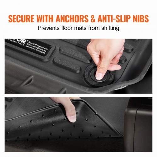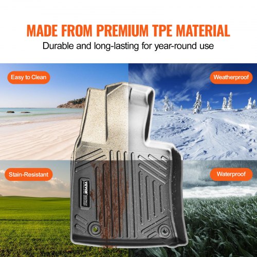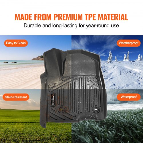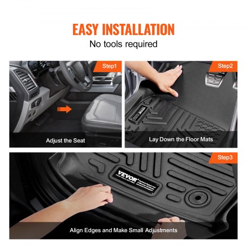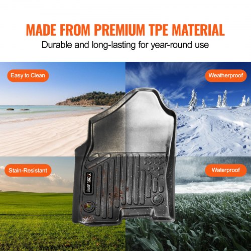 VEVOR Autofußmatten für 2015-2024 Ford F-150 (einschließlich 2022-2024 Lightning) SuperCrew mit Teppich und ohne klappbarem Stauraum, 3-tlg. wetterfeste maßgeschneiderte TPE-Fahrzeug Fußmatten