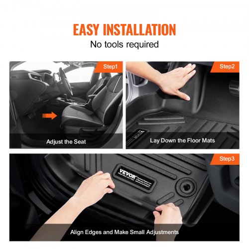 VEVOR Auto-Fußmatten passend für Toyota RAV4 (nicht für Hybrid oder Prime) 2019–2024, 3-teilige Einlagen für die vordere und zweite Reihe, wetterfeste maßgeschneiderte Autofußmatten aus TPE Schwarz