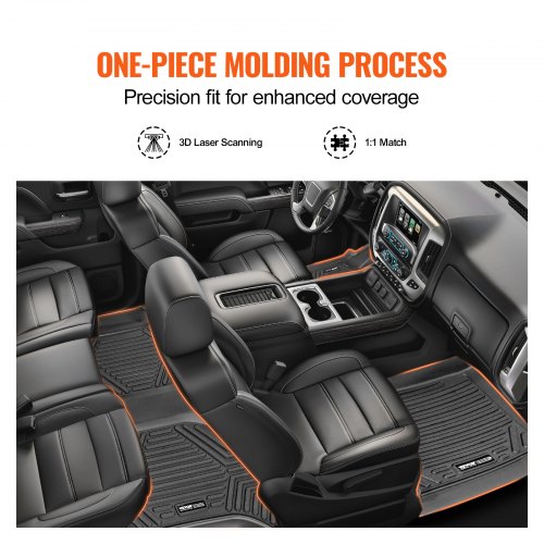 VEVOR Autofußmatten passend für Chevrolet Silverado/GMC Sierra 1500, 2500/3500 HD 2019–2024/2020–2024, 3-teilige Einlagen für die vordere und zweite Reihe, wetterfeste maßgeschneiderte TPE-Fußmatten