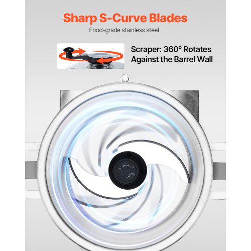 VEVOR Küchenmaschine Gemüsezerkleinerer 18 L Küchenmaschine aus lebensmittelechtem Edelstahl mit S-förmiger Klinge und Schaber, multifunktional zum Zerkleinern von Gemüse Obst Getreide Nüssen