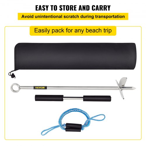 VEVOR Sandanke Bohrer zum Strand und zur Sandbank, 45 cm Schraubanker aus Edelstahl 316 mit Abnehmbarem Griff, Bungee-Leine und Tragetasche, für Jet-Ski-PWC-Pontonkajak