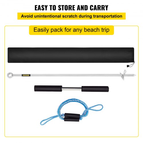 VEVOR Sandanker Bohrer zum Strand und zur Sandbank, 90 cm Schraubanker aus Edelstahl 316 mit abnehmbarem Griff, Bungee-Leine und Tragetasche, für Jet-Ski-PWC-Pontonkajak