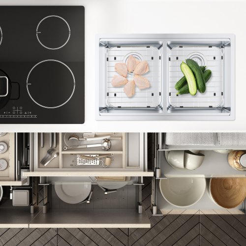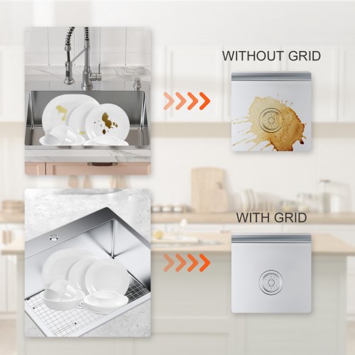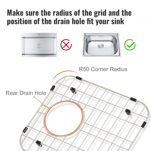 VEVOR 2 Stk. Spülbeckenschutzgitter, 338 x 295 x 25,4 mm Edelstahl-Spülbeckenroste, Hinterer Abfluss-Spülbeckenrost mit R25-Eckradius, Große Spülbeckenbodengitter, Schüsselregal-Spülbeckenzubehör