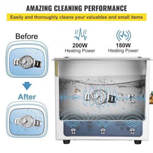VEVOR 6L Verbesserter Ultraschallreiniger (200 W Heizung, 180 W Ultraschall) Professioneller digitaler Labor-Ultraschall-Teilereiniger mit Heizungstimer für die Reinigung von Schmuck, Brillen