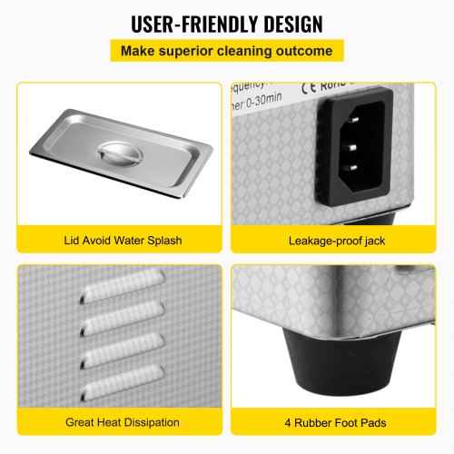 VEVOR 2 L Verbesserter Ultraschallreiniger (100 W Heizung, 60 W Ultraschall) Professioneller digitaler Labor-Ultraschall-Teilereiniger mit Heizungstimer für die Reinigung von Schmuck, Brillenteilen