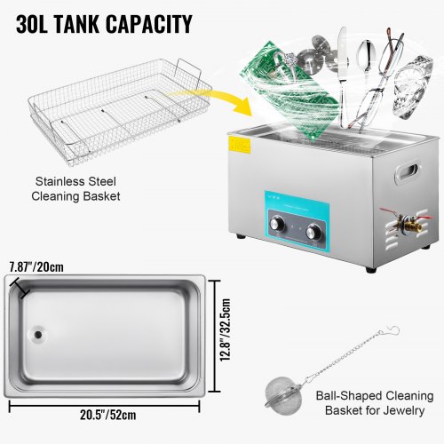 VEVOR Ultraschall Reiniger 30 L, Ultraschallreiniger Brille 230 V, Ultraschall Reiniger aus Edelstahl, Ultraschallgerät mit 2 Einstellbarer Reinigungsleistung 300 W, 600 W, für Zahnheilkunde, Geschirr