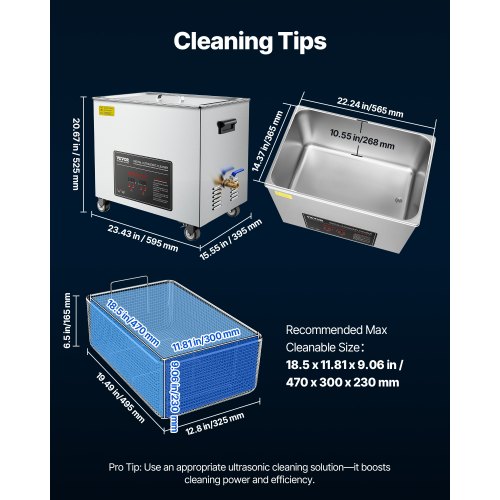 VEVOR Ultraschallreiniger Ultraschall Edelstahl-Reinigungsgerät 480 W, 22 L Ultraschallreinigungsgerät mit Digitaler Anzeige 0-30 Min, Reinigung Ultraschall für Schmuck, Brillen, Uhren usw.