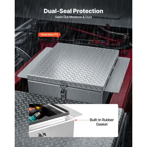 VEVOR Unterboden-LKW-Box, 914 x 610 x 610 mm Pickup-Aufbewahrungsbox, Aluminium-Diamantplatten-Werkzeugbox mit Schloss & Schlüsseln, Wasserdichte Anhänger-Aufbewahrungsbox mit T-Griff-Verriegelung