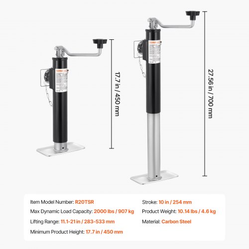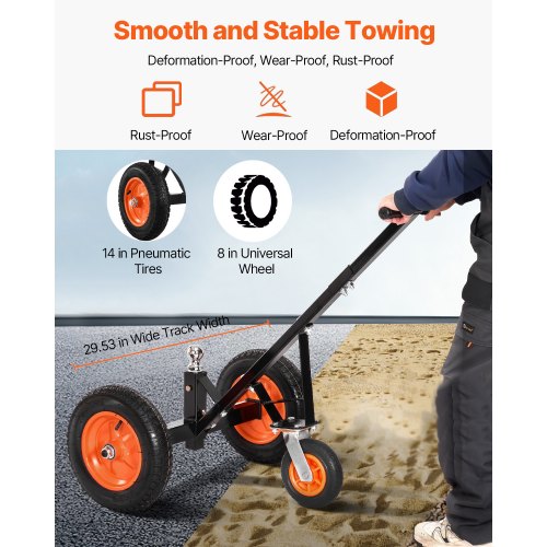 VEVOR Rangierhilfe Anhänger, Anhängerwagen, 272 kg Stützlast, 42 & 56cm einstellbare Höhe, 47,3mm Kupplungskugel, 254 mm Vollgummireifen, zum Bewegen von Wohnmobil-Bootsanhängern
