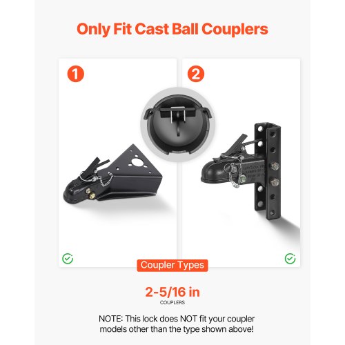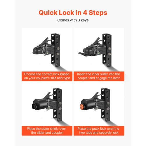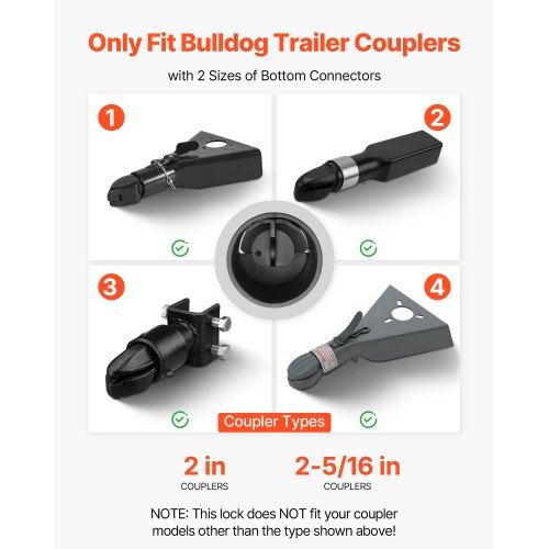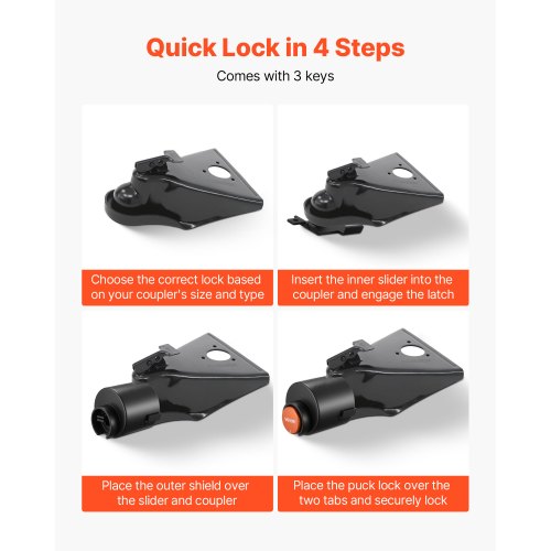 VEVOR Anhängerschloss, kompatibel mit 47,5 mm, 50,8 mm, 58,7 mm flachen Kugelkupplungen, Diebstahlsicherung mit 4 Schlüsseln, Sicherheitsschloss für Wohnmobile, Anhänger, Boote