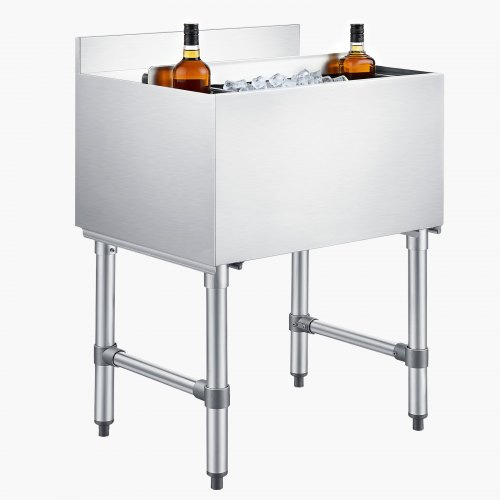 VEVOR kommerzieller Eisbehälter 95,3 L Untertheken-Eisbehälter (913 x 483 x 937 mm) Edelstahl-Eisbox mit Schiebedeckel & verstellbaren Kugelfüßen, Kühlwagen für Bar Restaurant Küche Silber