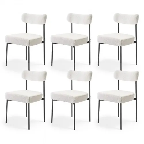 VEVOR moderner Esszimmerstuhl (4 Stk.) Sherpa-Beistellstuhl (136 kg belastbar) für Esstische, platzsparender Küchentischstuhl mit geschwungener Rückenlehne & schwarzen Metallbeinen, Weiß Cafeteria