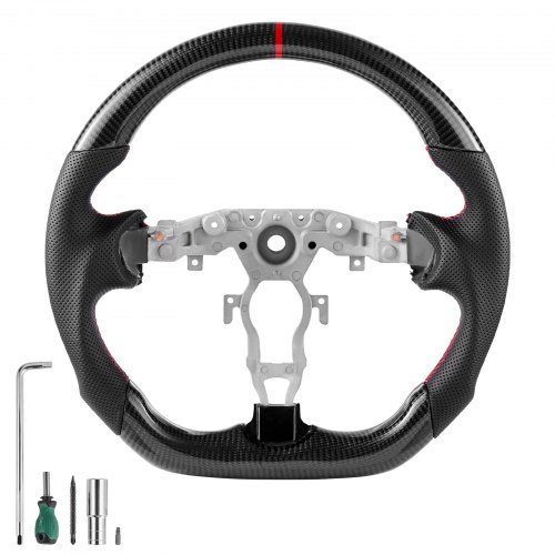VEVOR Lenkrad für Nissan 370Z (2008–2020), Volant aus Kohlefaser D-förmig, unten abgeflacht, Ledergriff mit rutschfester Oberfläche & präziser Naht, Ersatzteil für Nissan 370Z, Schwarz