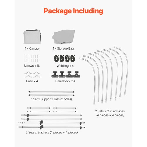VEVOR Bimini Top Bootsabdeckung Sonnenverdeck (4 Bögen) aus 600D Polyester mit Rahmen aus Aluminiumlegierung, wasserdichte Sonnenschutz-Bootsmarkise mit Aufbewahrungstasche, 185-198 cm (B) Hellgrau