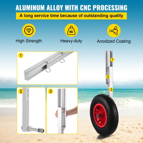VEVOR Kajakwagen, 113 kg, Kanuwagen mit 19,1 cm Vollgummireifen & 4 m Spanngurt, Bootswagen zum Transportieren von Kajaks, Kanus, Paddleboards, Jon-Booten, Wassersportgeräte, 560x190x485 mm