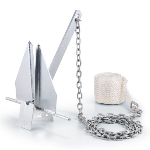 VEVOR Fluke-Ankerset Feuerverzinkter Fluke-Anker 4 kg aus Stahl mit 2,4 m Kette, 22,86 m Seil und zwei 9 mm Schäkeln, Bootsanker für kleine Schiffe unter 5,49 m, Meere, Flüsse und Küsten
