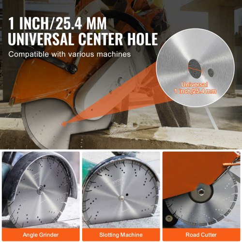 VEVOR Diamanttrennscheibe, 14 Zoll/350 mm Betonsägeblatt für Nass- oder Trockenarbeiten, 0,39 Zoll/10 mm Diamantsegmenttrennscheibe mit schrägen Zähnen, universeller Mittellochdurchmesser 1 Zoll/25,4 mm, für Beton, Zementplatten, Fliesen, Ziegel
