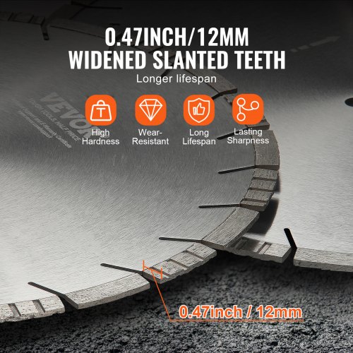 VEVOR Diamantsägeblatt Betonsägeblatt 45 cm für Nass- oder Trockenarbeiten, 12 mm Diamantsegmentsägeblatt mit flachen Zähnen, Mittellochdurchmesser 25,4 mm, für Beton, Zementplatten, Fliesen, Ziegel