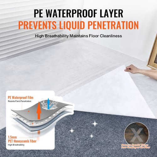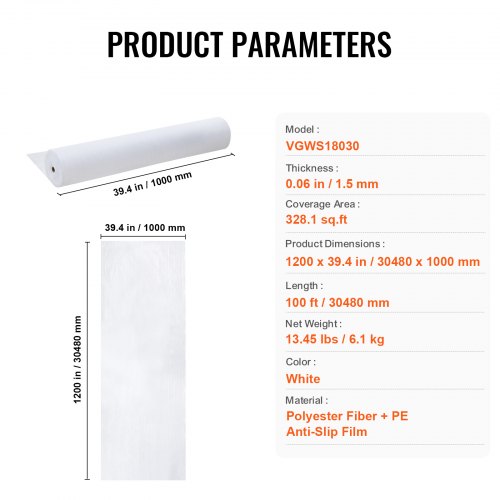 VEVOR Teppichschutzfolie, 39 Zoll x 100 Fuß Boden- und Oberflächenschutz, leicht zu schneiden, einfache Installation, Fasergewebe-Automatten-Schutzfolienrolle für Bau und Renovierung, weiß