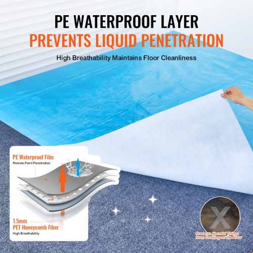 VEVOR Teppichschutzfolie, 40 Zoll x 84 Fuß Boden- und Oberflächenschutz, leicht zu schneiden, einfache Installation, Fasergewebe-Schutzfolienrolle für Automatten für Bau und Renovierung, blau