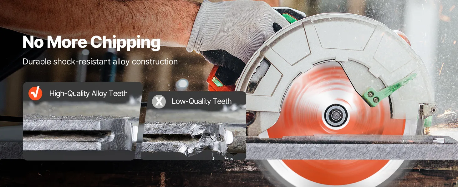Hochwertiger legierter Stahl: Dieses Metallschneidblatt für Kreissägen besteht aus hochhartem, legiertem Stahl und bleibt auch beim Schneiden harter Materialien länger scharf. Es ist äußerst schlagfest und stabil, was zu gleichmäßigeren, vibrationsärmeren Schnitten führt