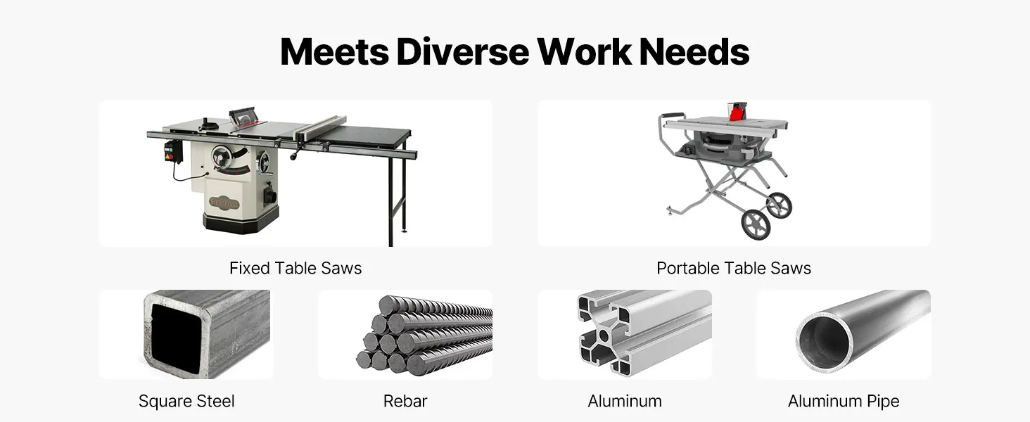 Unser Metallsägeblatt ist sowohl für stationäre als auch für tragbare Tischkreissägen geeignet und ermöglicht somit eine flexible Nutzung in verschiedenen Arbeitsumgebungen. Es ist eine praktische Ergänzung für Ihren Werkzeugkasten und ideal zum Schneiden unterschiedlicher Materialien bei vielfältigen Aufgaben.
