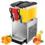 Getränkespender mit zwei Tanks, 12L (3,2 US Gal) pro Tank, kompakt und gleichzeitig leistungsstark. Verbreiterte Rührwerke ermöglichen eine effizientere 360°-Rührung. Gummidichtungen verhindern das Austreten von Saft.