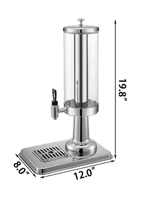 Dieser Hotelsaftspender besteht aus strapazierfähigem Edelstahl und strapazierfähigem PC-Material und ist zuverlässig für eine lange Lebensdauer. Es ist ideal zum Servieren von Tee, Limonade, Saft oder Sangria auf fast jeder Veranstaltung. Mit einer großzügigen Kapazität von 3 Gallonen minimiert dieser einzelne Getränkespender die Nachfüllzahlen.