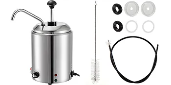 Der mit einer Pumpe ausgestattete Nacho-Käsewärmer besteht aus Edelstahl in Lebensmittelqualität. Rostschutz, Korrosionsschutz und einfache Reinigung. Der Nachokäse und die Soßen können von 30 110 auf 110 ℃ erwärmt werden. Es verfügt über einen Warmhaltebehälter mit großem Fassungsvermögen von 2,5 l, der sich perfekt zum Schmelzen von Nacho-Käse, scharfem Fudge und anderen Soßen eignet.