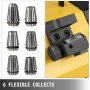 Schleifmaschine für Schärfbohrer mit 6 Spannzangen (ER20) und 5 Aufsätzen (15 #), geeignet für Fräser Durchmesser von 4 bis 14 mm. Die Aufsätze sind genau genug, um die Arbeitseffizienz zu verbessern.