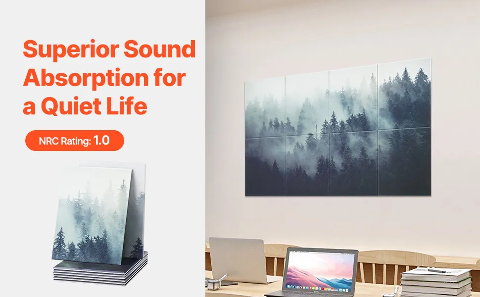 Effiziente Schallabsorption: Unsere großformatigen, hochdichten Paneele aus hochwertiger Polyesterfaser decken eine größere Fläche ab. Mit einem NRC-Wert von bis zu 1 absorbieren sie effektiv mittel- bis hochfrequente Geräusche, reduzieren Echos und Nachhall und schaffen so eine ruhige und angenehme Umgebung für Sie.
