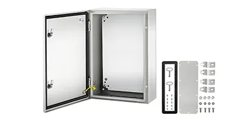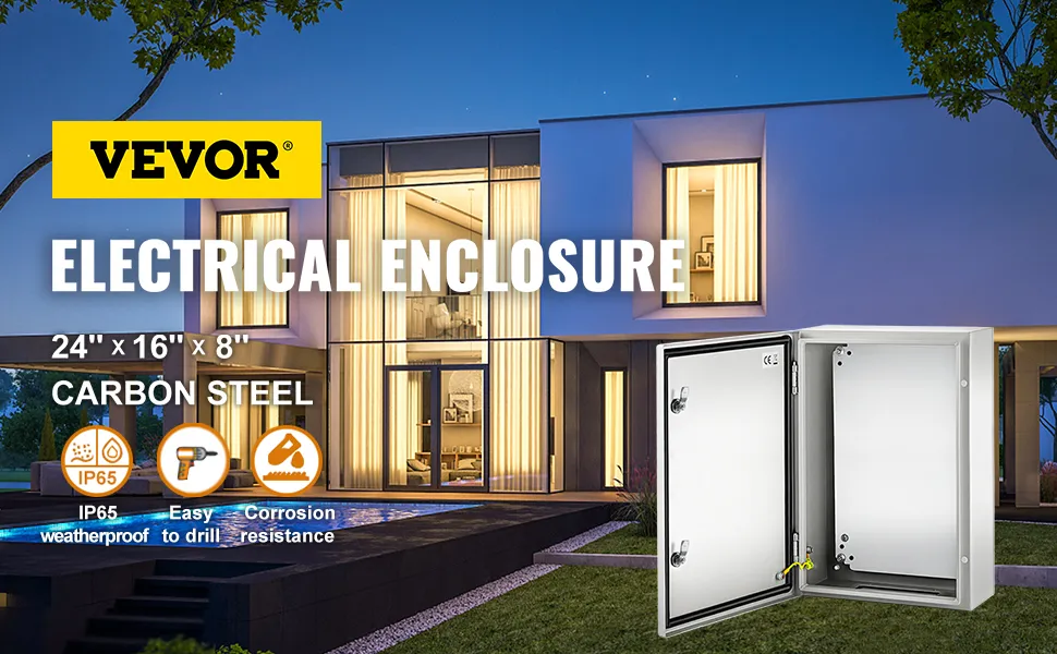 Der Schaltkasten besteht aus hochwertigem Kohlenstoffstahl mit einem ausgeklügelten Verriegelungskern, einem hochfesten Scharnier, einem Dichtungsgummistreifen und einer Schutzart IP65, um die interne elektrische Sicherheit in rauen Umgebungen gut zu schützen. Es wird häufig für Innen- und Außenanwendungen verwendet, um Schaltkreise vor Flüssigkeiten und Korrosion zu schützen, z. B. vor Elektrizität, Bauwesen, Hotels und anderen Branchen.