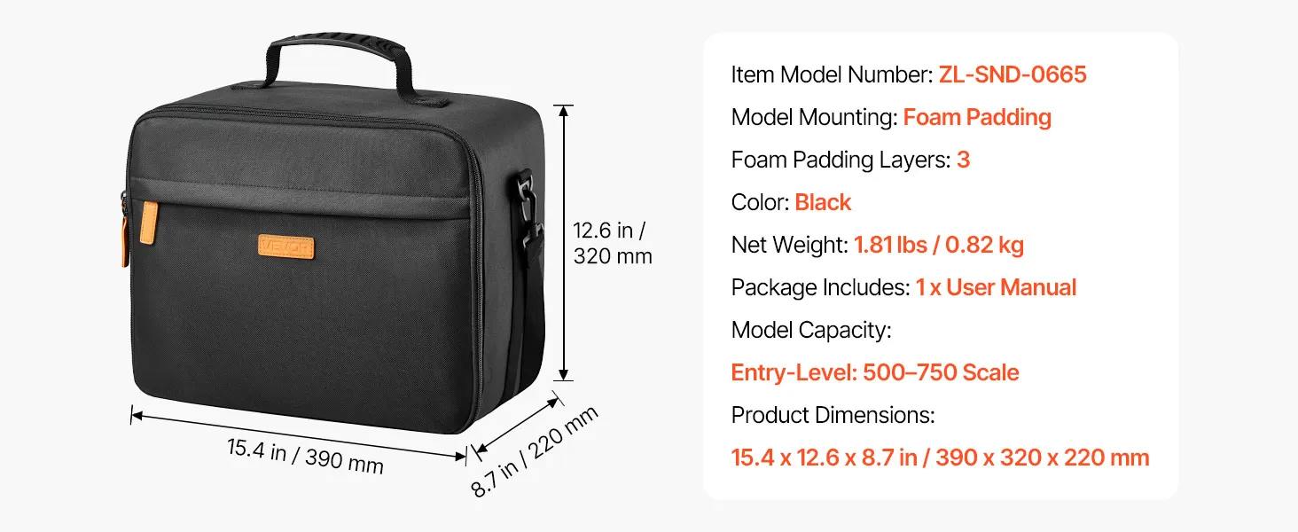 VEVOR Miniatur Aufbewahrungstasche, für Modelle im Maßstab 1:500-1:750, Transporttasche mit verstellbarem Schultergurt, 3 Schaumstoffschichten für großes Stauvolumen (Minis nicht enthalten)