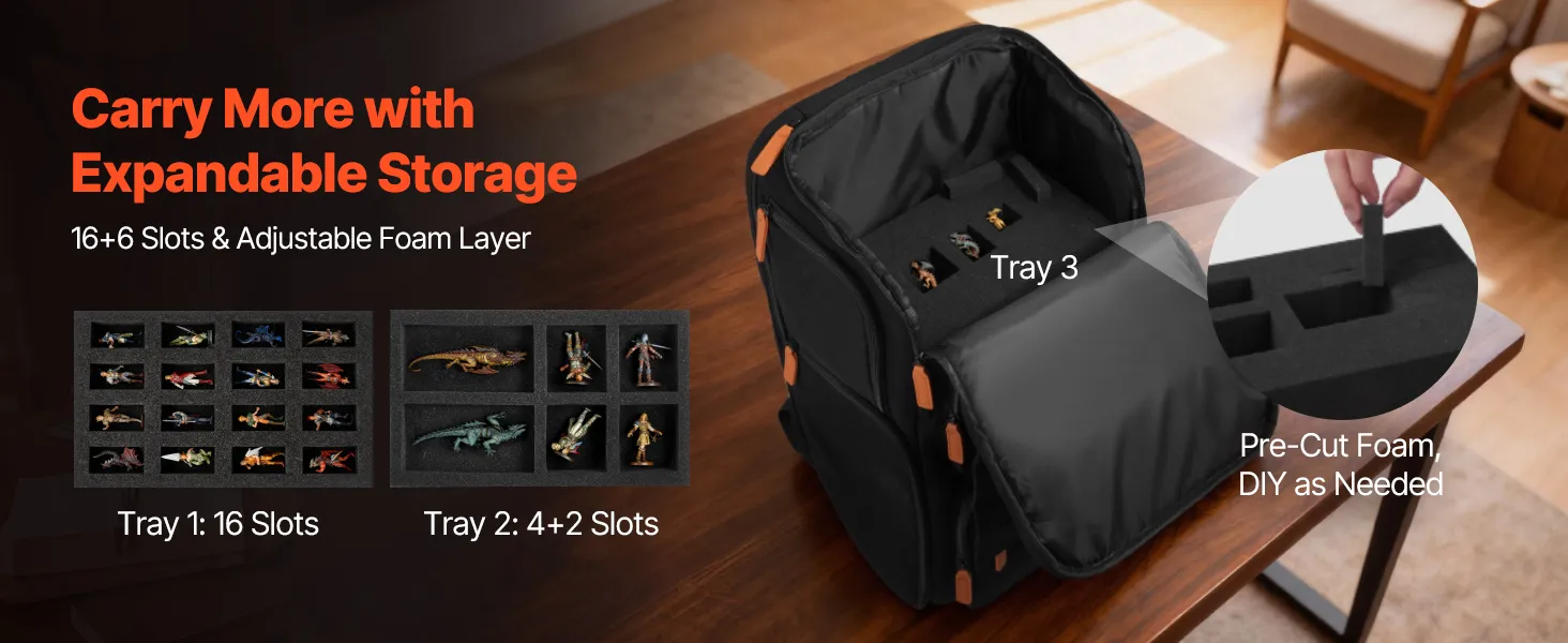 VEVOR Miniatur-Aufbewahrungstasche, passend für 58 Infanterie-Minis, Transporttasche mit Griff & verstellbarem Schultergurt, 3 Schaumstoffschichten für großes Stauvolumen (Minis nicht enthalten)